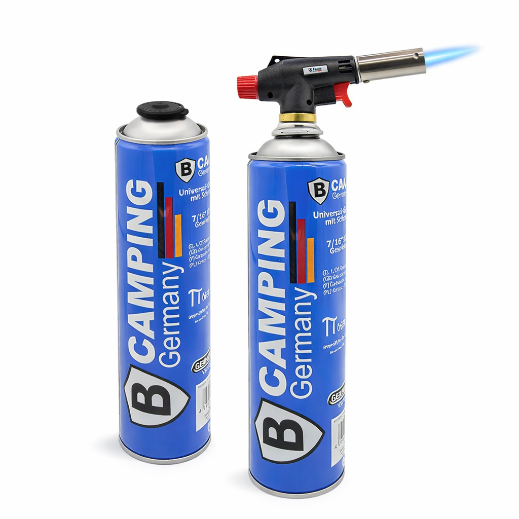 De meegeleverde gascartouches bevatten 330 gram butaan met een volume van 600 ml en zijn gekeurd volgens EN417 en UN2037 (EU).